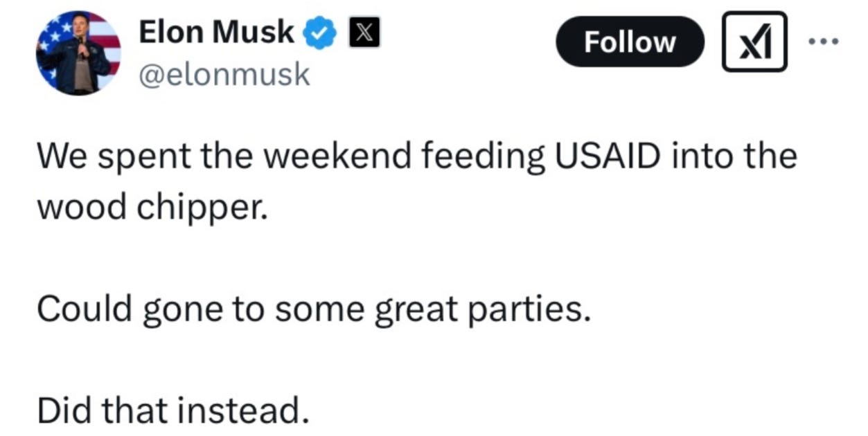 He then ratcheted up his dangerous and false rhetoric: “USAID is a criminal organization,” Musk posted. “Time for it to die.”
