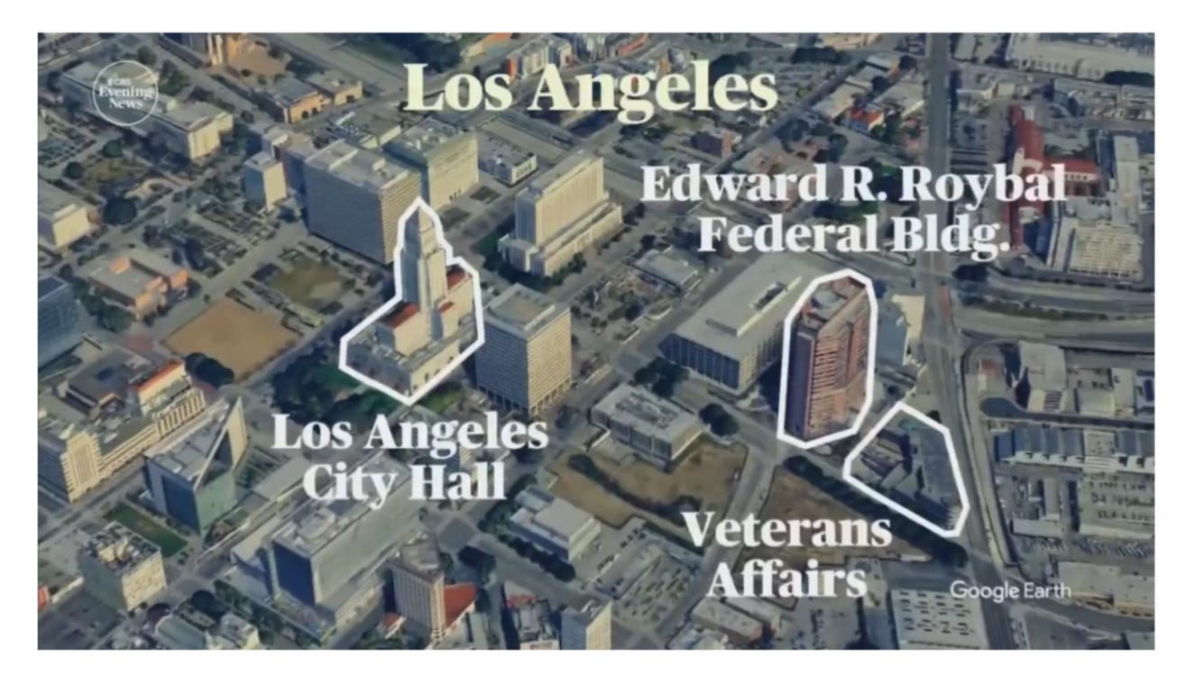 So the entire city of Los Angeles is on fire now, is it? Can you name a single building? Which district is it in?
