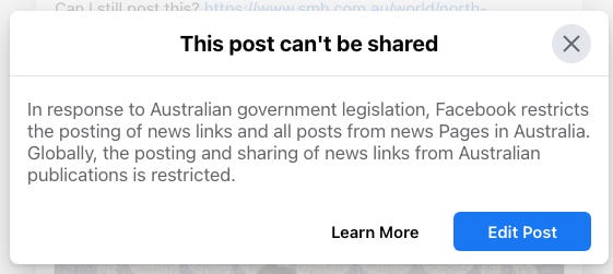 In response to a new proposed bill, Facebook decided that users in Australia may no longer share and view news on its platform. What does this portend?