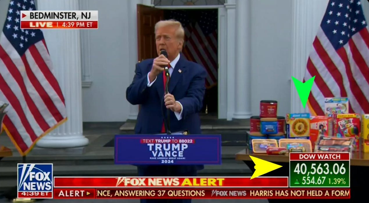Perhaps the most ironic moment came when Trump was warning of a collapse in the stock market under Harris as the Fox stock ticker showed the Dow broke past 40,000 and was up 500 points.