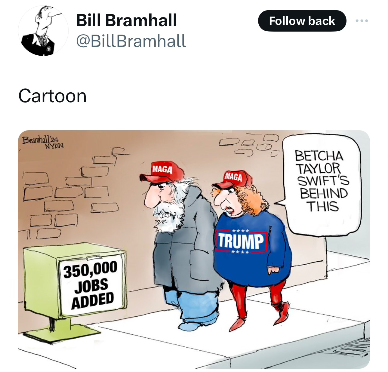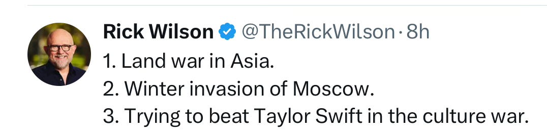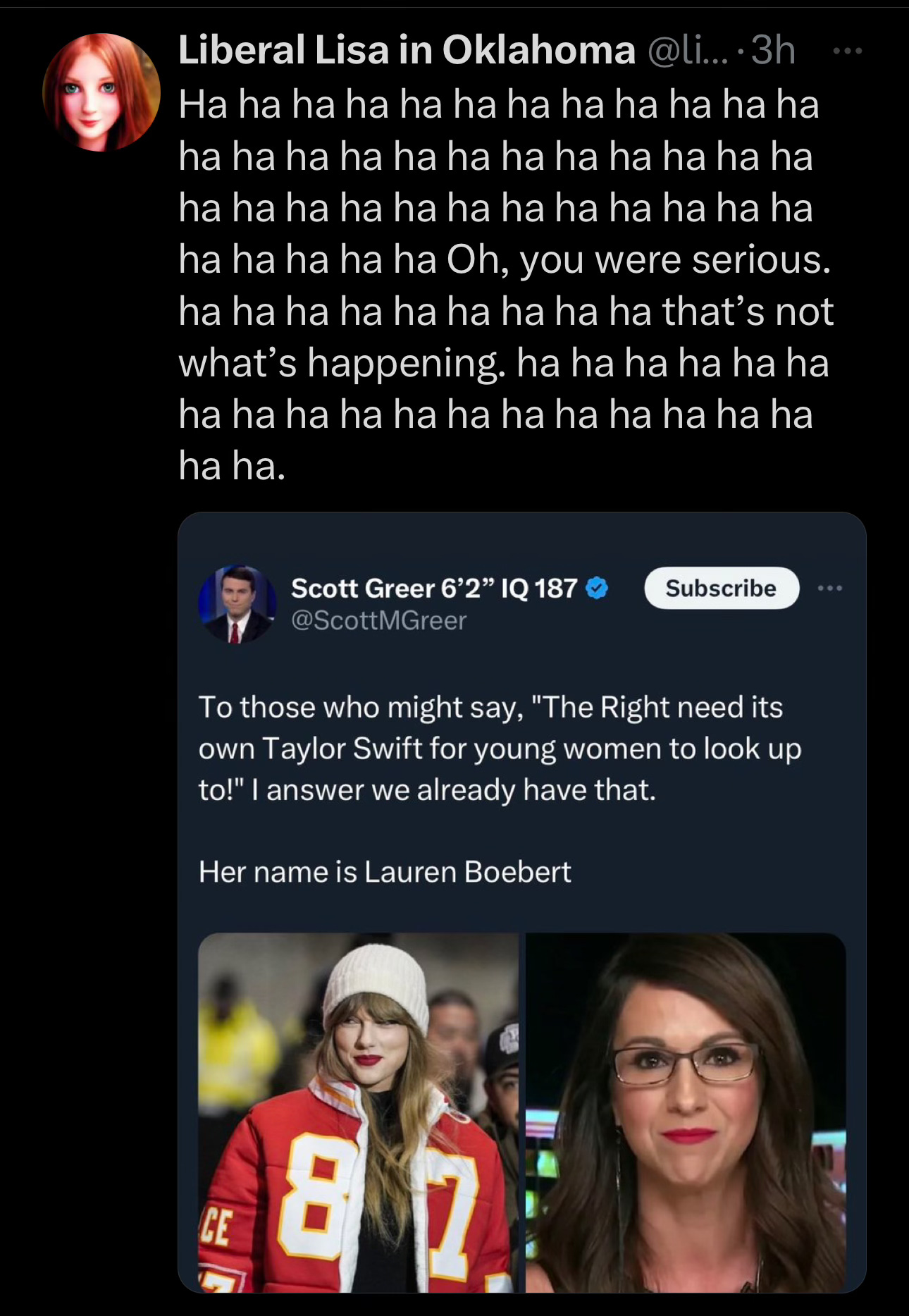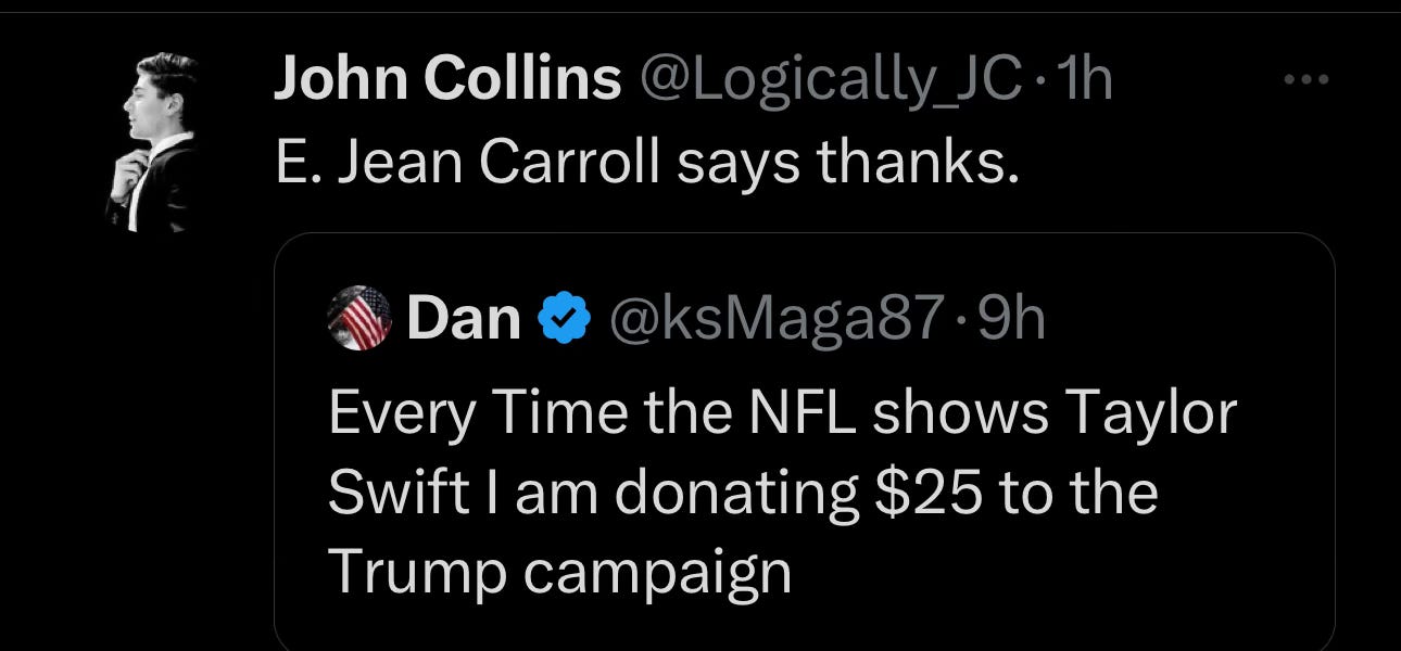 Speaking of the world’s biggest pop star, after the Kansas City Chiefs made it to the Super Bowl, MAGA turned its ire upon Taylor Swift. This remark tied it all up together nicely.