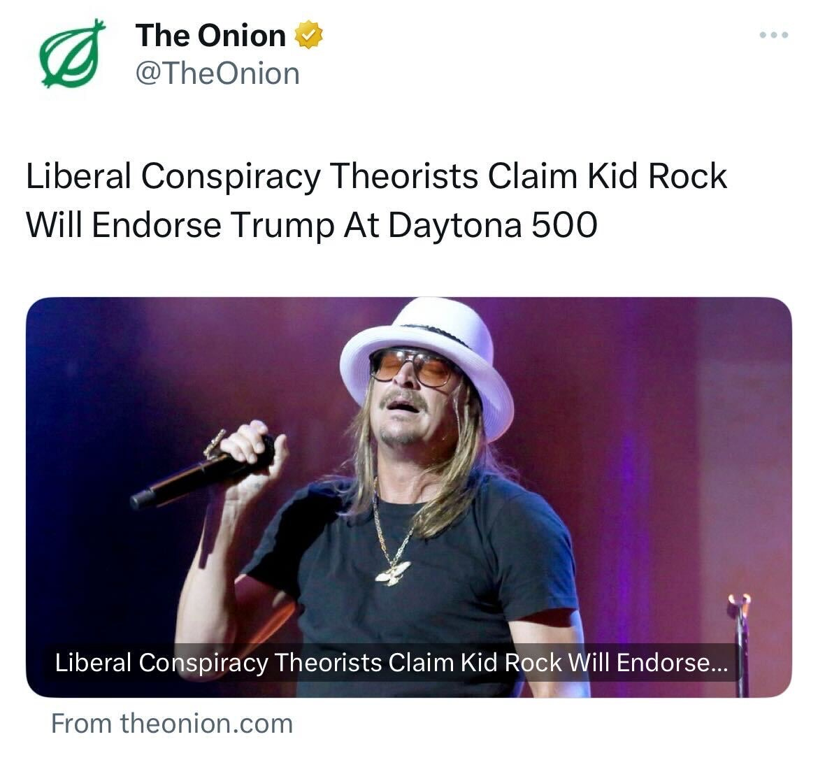 I did a whole piece earlier in the week about how the right is somehow convinced the whole Swift-Kelce romance is a conspiracy and a set-up to help elect Joe Biden. The Onion FTW:
