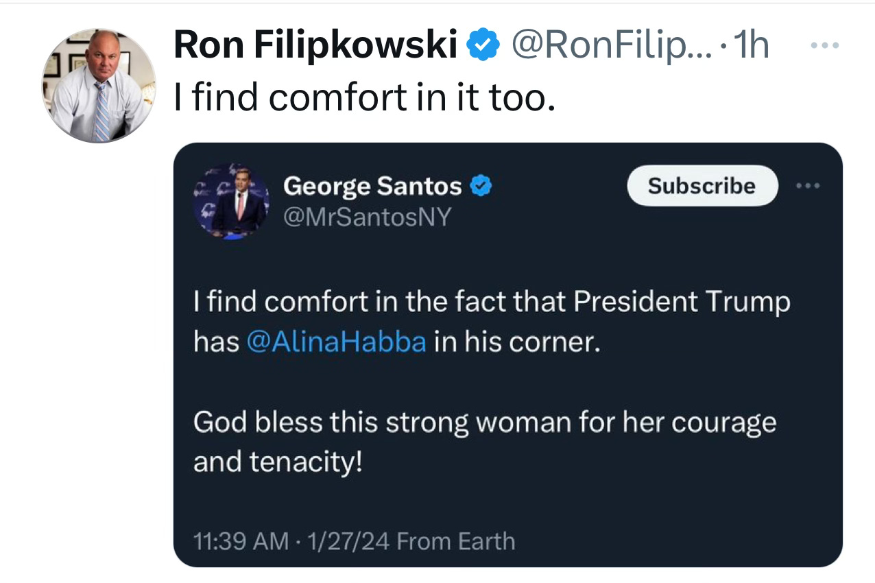 Former Congressman and hopefully soon to be federal inmate George Santos even decided to give her props, which was pretty much a death knell.