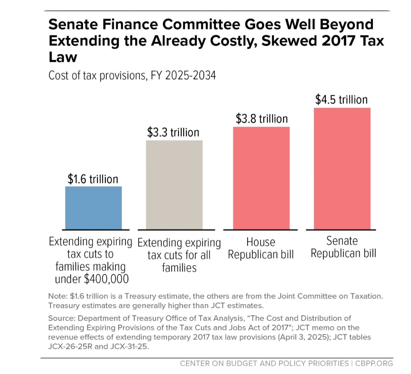 The bill uses those Medicaid “savings” to pay for an extension of the Trump Tax Cuts of 2017, which blew a hole in the deficit back then and has been adding to our national debt ever since.