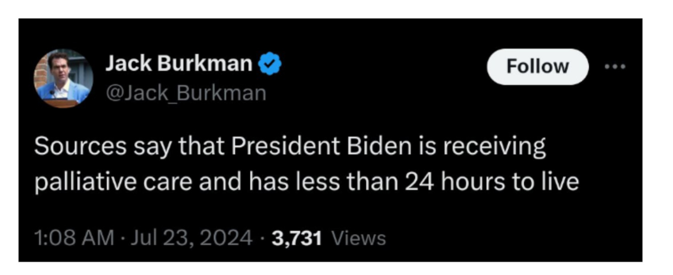 Today, Burkman still regularly posts ridiculous and false political claims on social media: