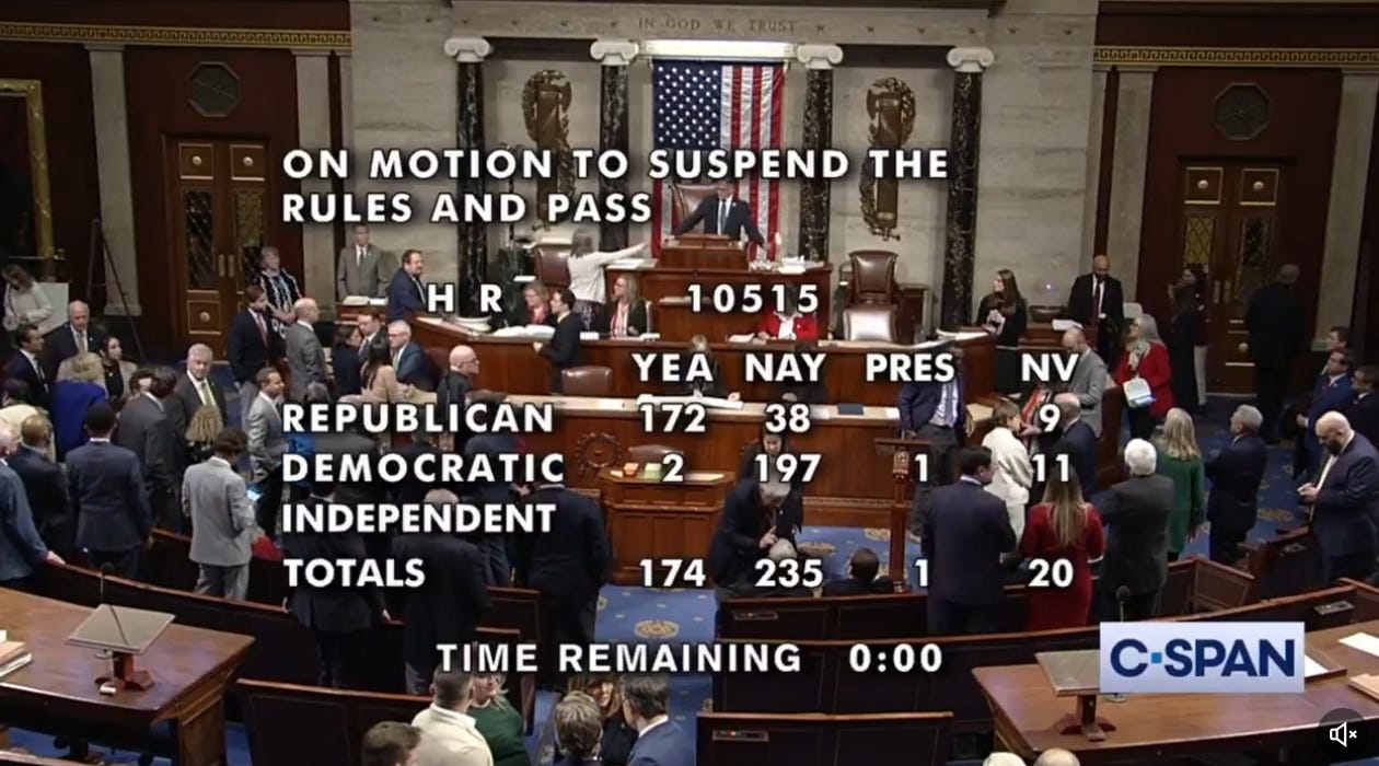 A side note here: Speaker Johnson was forced to bring this CR to the floor through a special mechanism that by-passed the normal Rules Committee and required a vote of two-thirds of the House to pass it. But he couldn’t even get a majority to favor it.