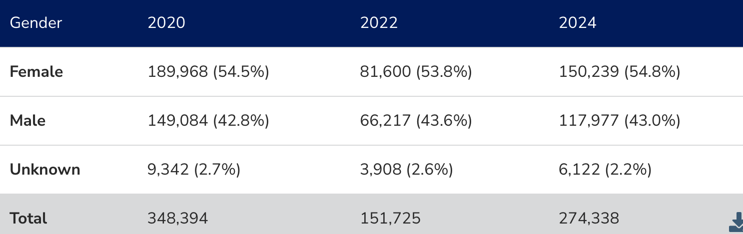I attended the Harris/Obama/Tyler Perry/Springsteen et al rally in Clarkston Ga last week. I'm a white 74 year old female with a PHD. I'd say the crowd of 24,000 was relatively evenly split along race and gender lines. And I'll tell you what struck me.... no matter what speaker mentioned it, and every one of them did, when reproductive freedom was brought up? The crowd went nuts. It matters in this race.