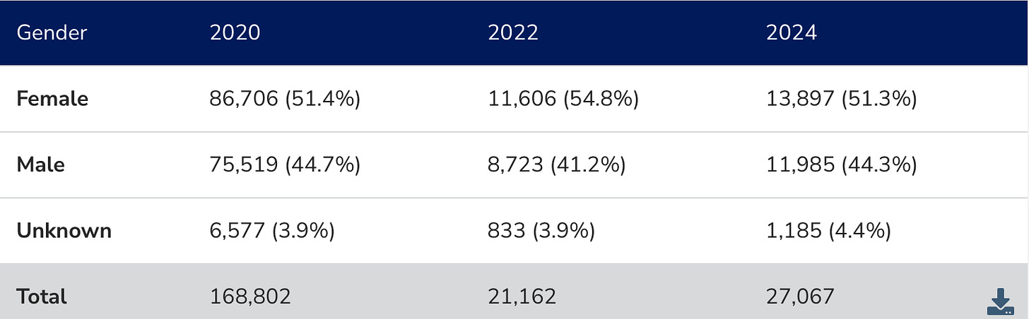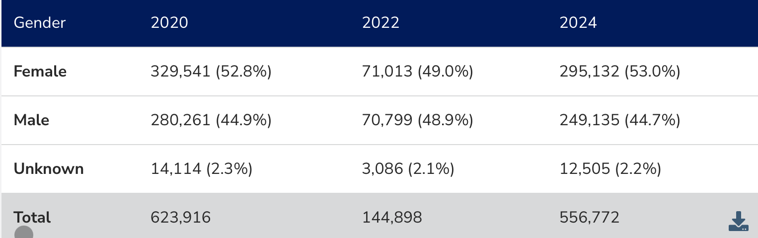 That’s right! Women have actually improved on the 2020 numbers by 4.2, while men have slacked off by 1.3 points.
