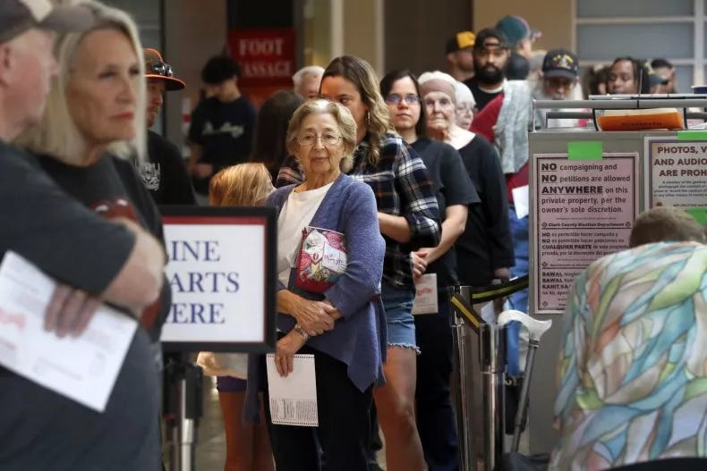 First, as has been widely reported, the number of early Democratic voters has fallen off sharply relative to 2020. This is because more Democrats are electing not to vote early this year. Meanwhile the number of Republican voters has been rising compared to 2020 as GOP efforts to get them to bank their votes has had some modest effect. We shouldn’t freak out over this. Nearly all of those Democratic voters will still show up on Election Day. But it does significantly skew the early vote by party registration numbers. In Pennsylvania, for example, that shift has resulted in around a 10 point gain for Republicans in the early vote percentage compared to 2020, with Democrats seeing around a 10 point loss. Again, this is expected and not a huge concern.