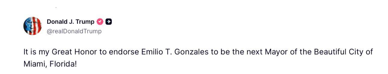 And this was with Trump’s endorsement of her opponent, Emilio Gonzalez, whom Trump said it was his “Great Honor” to back.