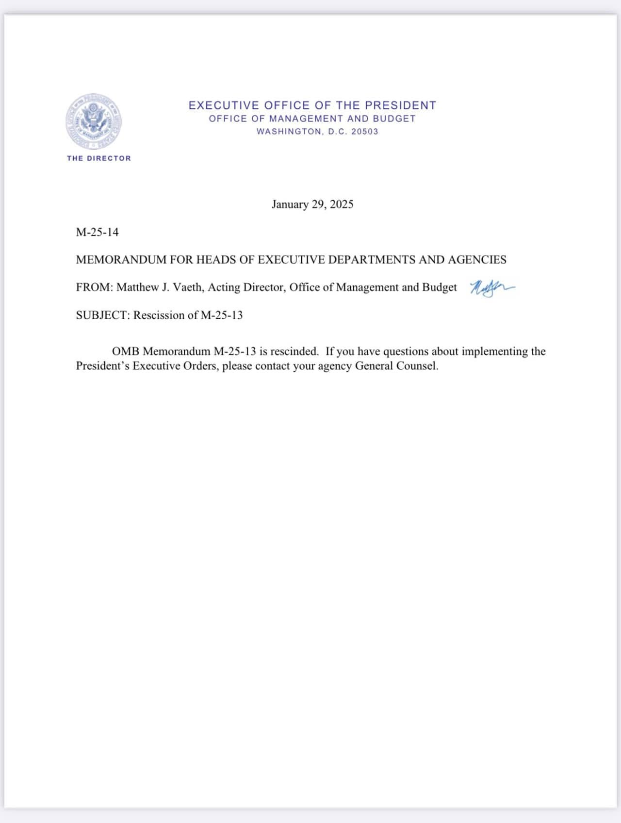 In fact, this time it worked so well that on Wednesday, the OMB issued a terse rescission of the entire first memo.
