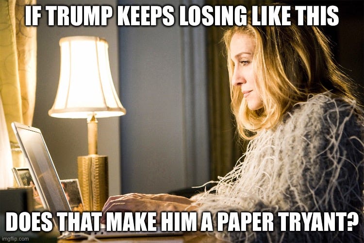 In fact, Trump has suffered so many setbacks in the last day that I couldn’t help wonder: Has Trump become a paper tyrant?