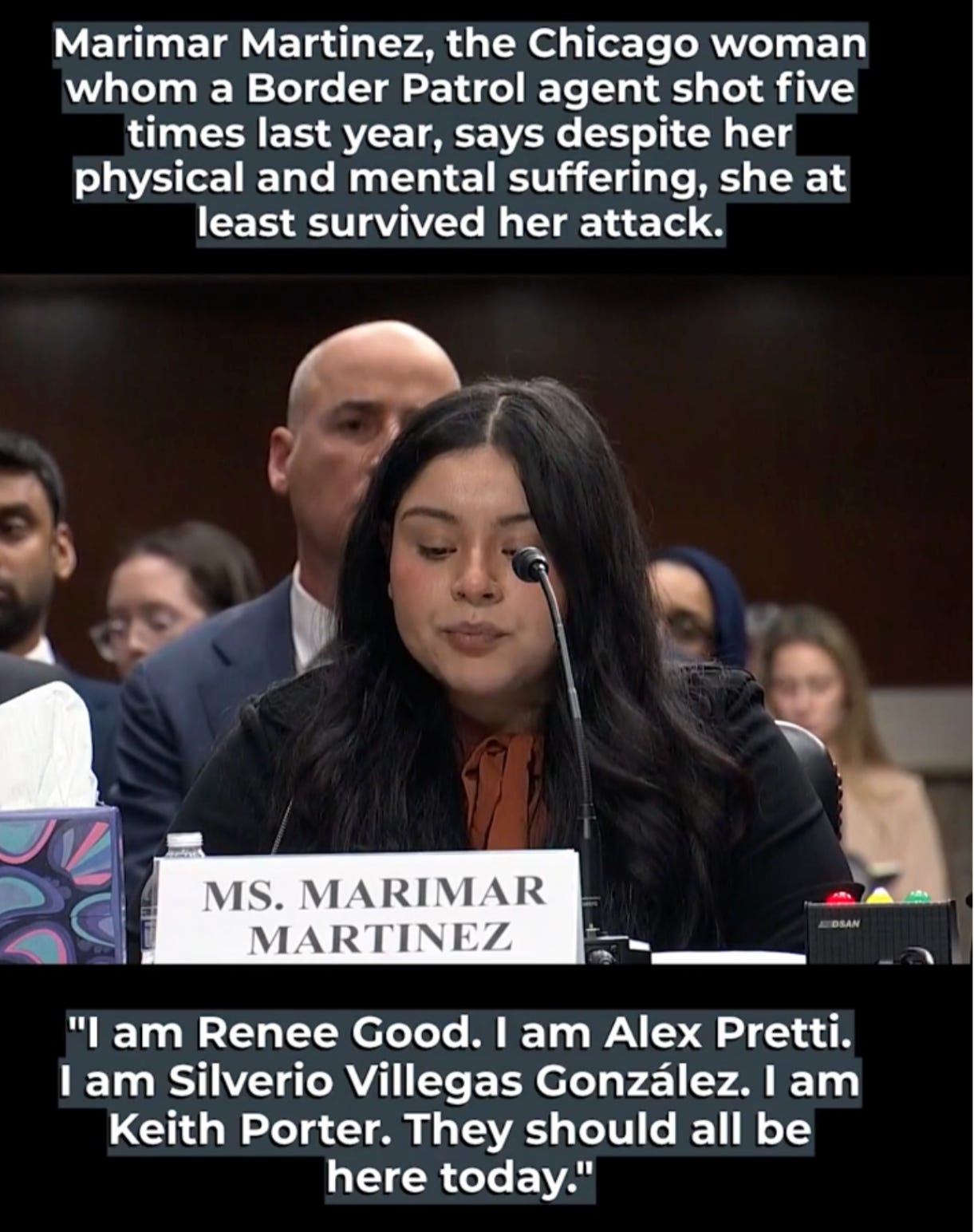 Martinez movingly used her time to speak for the slain victims who could not be there to tell their own stories. “I am Renee Good. I am Alex Pretti. I am Silverio Villegas González. I am Keith Porter. They should all be here today.”