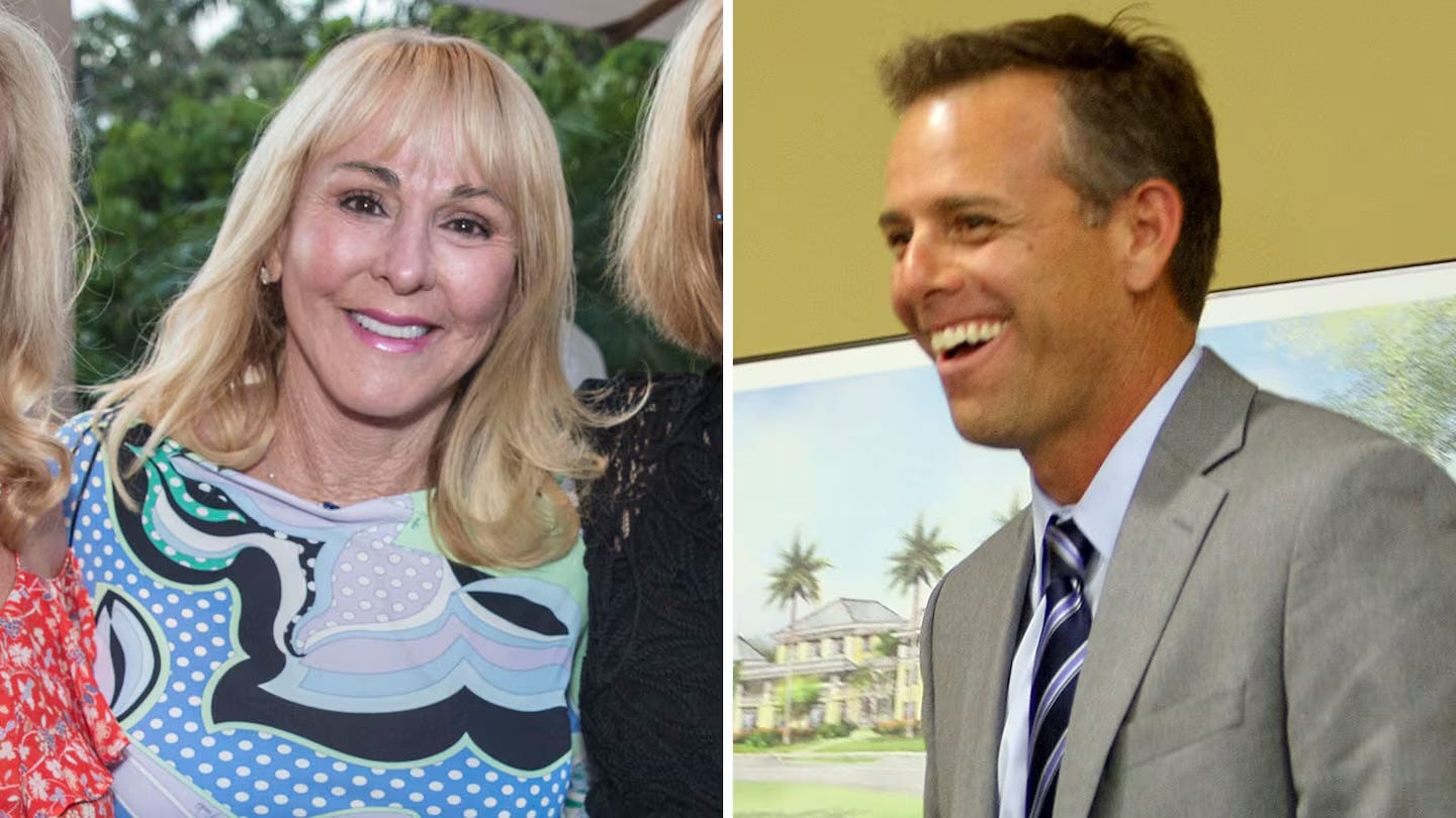 Elizabeth Fago (left) attended a fundraiser at Mar-a-Lago in April. Three weeks later her son Paul Walczak (right) received a full and unconditional pardon from President Trump. Photo by Nick Mele/Patrick McMullan via Getty/Bill Ingram/Imagn.