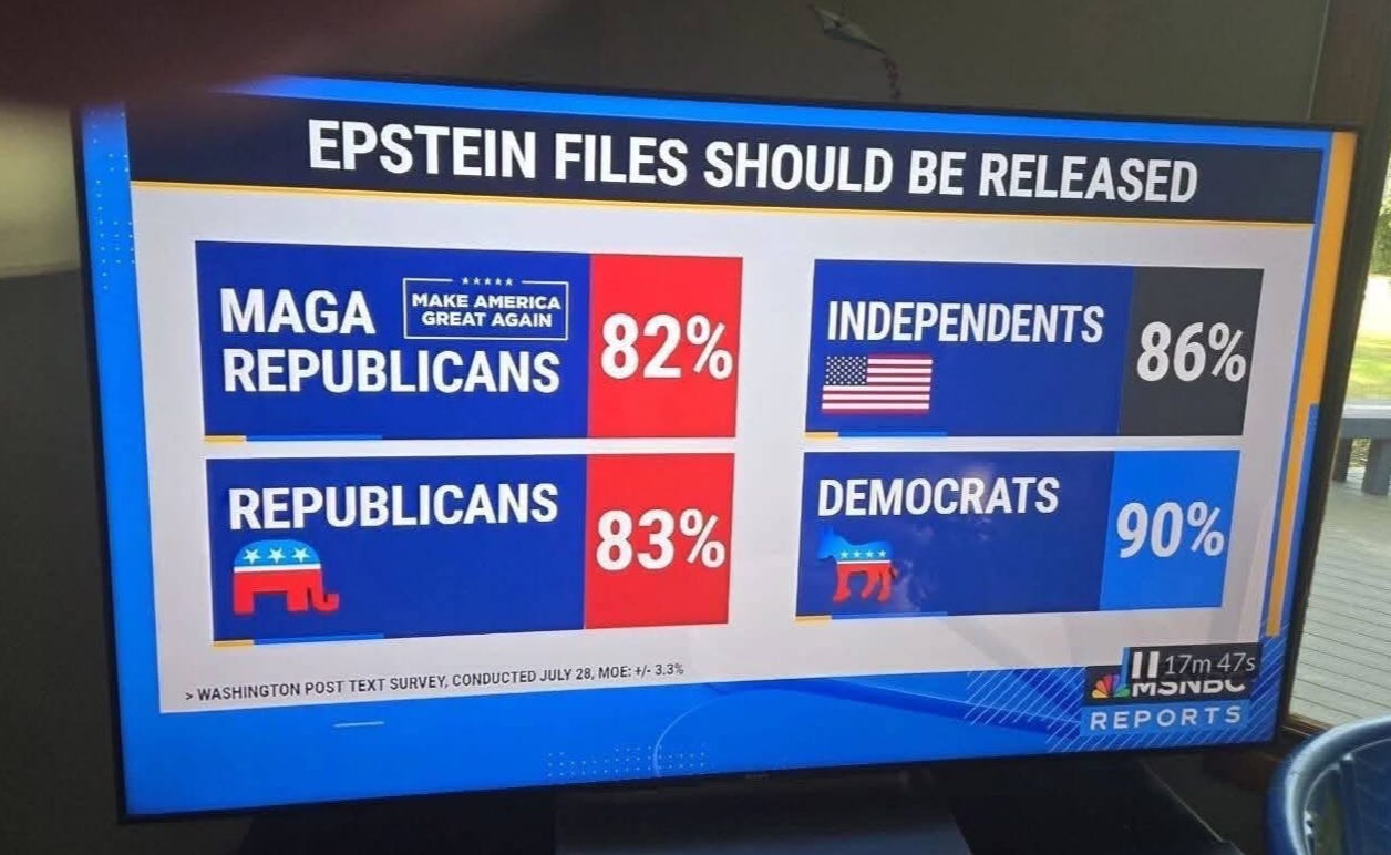 If you’re counting, we’re now a month into the Epstein crisis, and it shows no signs of abating. If anything, there is a growing public consensus around the need for full transparency around the Epstein files. A Washington Post survey, taken about a week ago, revealed remarkable convergence on this question even among MAGA Republicans.