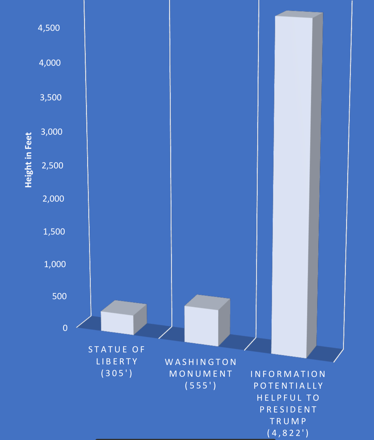 To drive their point further home, they have a graphic! Look how tall 11.5 million pages is! It’s so much taller than the Statue of Liberty and the Washington Monument. (By the way, this is the point in the brief when you realize they are clearly writing for an audience other than Judge Chutkan, who is well versed in discovery and the volume of documents in complex trials.)
