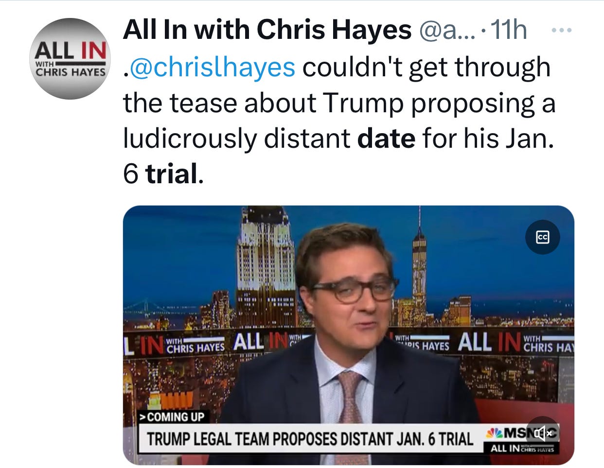 We’ll know the judge’s decision on the trial date at the upcoming hearing on August 28. Until then, keep in mind that the reporting on the proposed trial date is often woefully biased in Trump’s favor, and that experienced lawyers and judges understand what’s really going on.