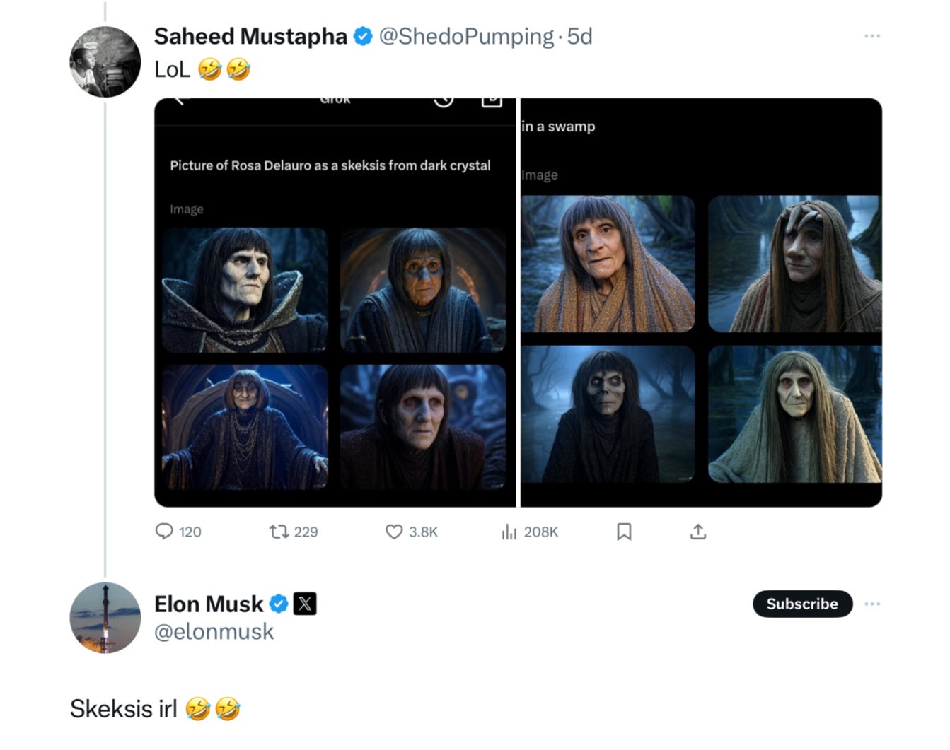 Second, he joined other internet trolls in mocking DeLauro and using AI to alter her appearance, comparing her several times to the “skeksis” characters in a children’s fantasy film classic.
